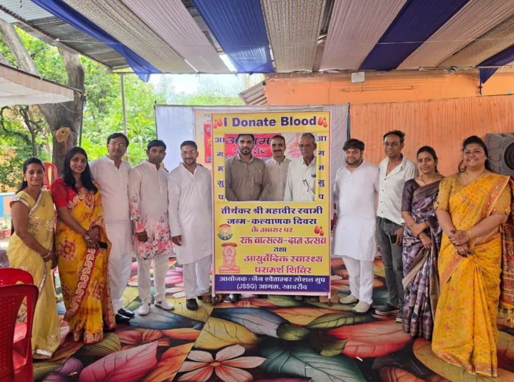 खाचरौद। तीर्थंकर महावीर स्वामी के जन्म कल्याणक दिवस के अवसर पर खाचरौद नगर में रक्त-वात्सल्य-दान उत्सव एवं निःशुल्क आयुर्वेदिक स्वास्थ्य शिविर का लगातार तीसरे वर्ष आयोजन जैन श्वेतांबर सोशल ग्रुप ’आगम’ तथा गुरु भक्त मंडल संस्थाओं द्वारा संयुक्त रूप से किया गया। शिविर में बड़ी संख्या में नगर के महिला व पुरुषों ने पहुंचकर भागीदारी की।