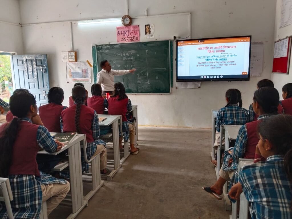 रतलाम 4 अप्रैल। ध्यप्रदेश शासन के निर्देशानुसार जिले में “स्कूल चले हम अभियान 2026” के अंतर्गत आज 4 अप्रैल को विभिन्न शासकीय विद्यालयों में “भविष्य से भेंट” कार्यक्रम आयोजित किया गया। कलेक्टर श्रीमती मिशा सिंह के मार्गदर्शन में अधिकारियों द्वारा विद्यालयों में पहुंचकर विद्यार्थियों से संवाद कर उनके भविष्य निर्माण पर मार्गदर्शन दिया।