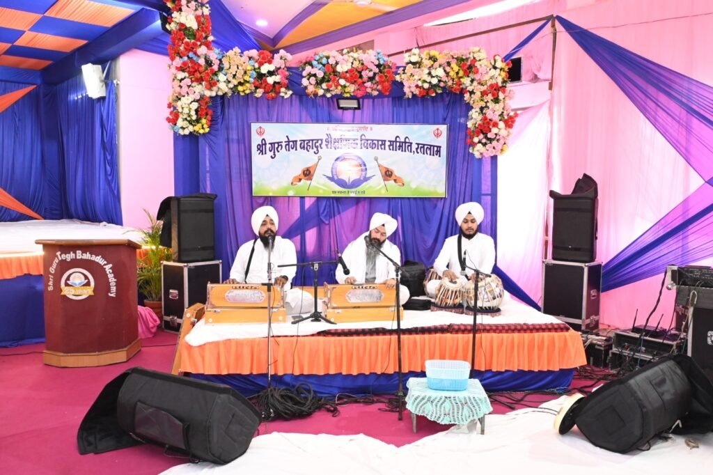 रतलाम। श्री गुरु तेग़ बहादुर शैक्षणिक विकास समिति द्वारा बड़बड़ रोड स्थित खालसा सभागृह में श्री गुरु तेग बहादुर जी के प्रकाश पर प्रति वर्षअनुसार इस वर्ष भी विद्यार्थियों के चरित्र निर्माण के निमित्त अखंड पाठ साहब एवं कीर्तन दरबार का आयोजन किया जा रहा है। 5 अप्रैल को श्री अखंड पाठ साहिब की आरंभता की गई जिसमें विशेष रूप से पंथ प्रसिद्ध रागी सिंघ भाई साहब भाई संतोष सिंह जालंधर वाले हजूरी रागी दरबार साहब अमृतसर एवं साथियों द्वारा गुरु शब्द का गायन किया गया । तत्पश्चात गुरु का लंगर अटूट बरता। आज 7 अप्रैल मंगलवार को श्री तेग़ बहादुर अकेडमी परिसर में प्रातः श्री गुरु ग्रंथ साहिब जी के अखंड पाठ साहिब का समापन होगा, उसके पश्चात भाई साहब संतोष सिंह जी जालंधर वाले, ज्ञानी मान सिंह ज्ञानी हंसराज सिंह द्वारा गुरु शब्दों का गायन किया जाएगा। दोपहर 1:30 पर संपूर्ण समाप्ति कर गुरु का लंगर अटूट वर्तेगा।