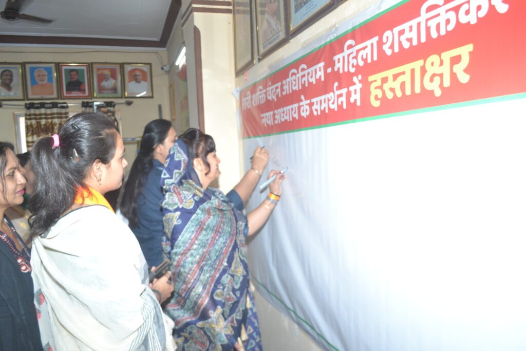 कार्यक्रम के दौरान भाजपा जिला उपाध्यक्ष अनिता कटारिया, मंडल अध्यक्ष सोना शर्मा, महिला मोर्चा जिला महामंत्री अनिता पाहूजा, मंडल अध्यक्ष पूजा वोहरा, भावना गुर्जर, पदाधिकारी दिव्या शर्मा, ललिता पंवार, सीमा अग्रवाल, सरिता लोढ़ा, मीना टांक और जीवन ज्योति सहित जनप्रतिनिधि एवं कार्यकर्तागण उपस्थित रहे। अंत मे नारी शक्ति वंदन अधिनियम के समर्थन मे हस्ताक्षर अभियान चलाया गया। इसमे सभी उपस्थित लोगो ने हस्ताक्षर कर अपना समर्थन व्यक्त किया।