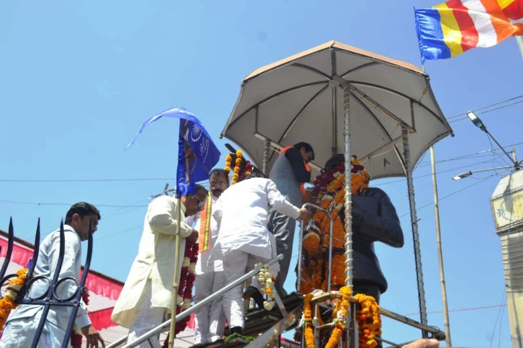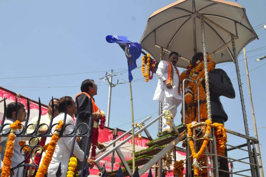 रतलाम 14 अप्रैल । 14 अप्रैल भारत रत्न डॉ0 भीमराव जी अम्बेडकर की 136 वीं जयंती पर सूक्ष्म, लघु एवं मध्यम उद्यम मंत्री माननीय श्री चेतन्य जी काश्यप, महापौर प्रहलाद पटेल, भाजपा जिलाध्यक्ष प्रदीप उपाध्याय, मनोहर पोरवाल, पूर्व विधायक रतलाम ग्रामीण दिलीप मकवाना, विप्लव जैन, भाजपा जिला कोषाध्यक्ष पवन सोमानी, सोनू यादव, पूर्व भाजपा जिलाध्यक्ष बजरंग पुरोहित, श्रीमती अनिता कटारिया, महापौर परिषद सदस्य, पार्षदगण तथा जनप्रतिनिधियों ने छत्रीपुल स्थित डॉ0 भीमराव अम्बेडकर जी की प्रतिमा पर माल्यार्पण कर उन्हे याद किया।