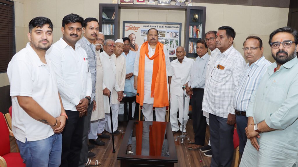 रतलाम 14 अप्रैल। सनातन धर्म सभा एवं महारुद्र यज्ञ समिति ने त्रिवेणी मेला क्षेत्र का सीमांकन कराने एवं 2.5 बीघा अतिरिक्त भूमि मिलने पर कैबिनेट मंत्री चेतन्य काश्यप का अभिनंदन किया। समिति पदाधिकारियों ने इस उपलब्धि पर हर्ष जताते हुए श्री काश्यप को धन्यवाद ज्ञापित किया। इस दौरान सनातन धर्म सभा एवं महारुद्र यज्ञ समिति के कन्हैयालाल मौर्य, पं.रामचंद्र शर्मा, लालचंद टांक, नवनीत सोनी, डॉ. राजेन्द्र शर्मा, मनोहर पोरवाल, विशाल शर्मा, पुष्पेन्द्र जोशी, सत्यनारायण पालीवाल, रमेश गोयल, यश चौधरी, चेतन शर्मा उपस्थित रहेे।