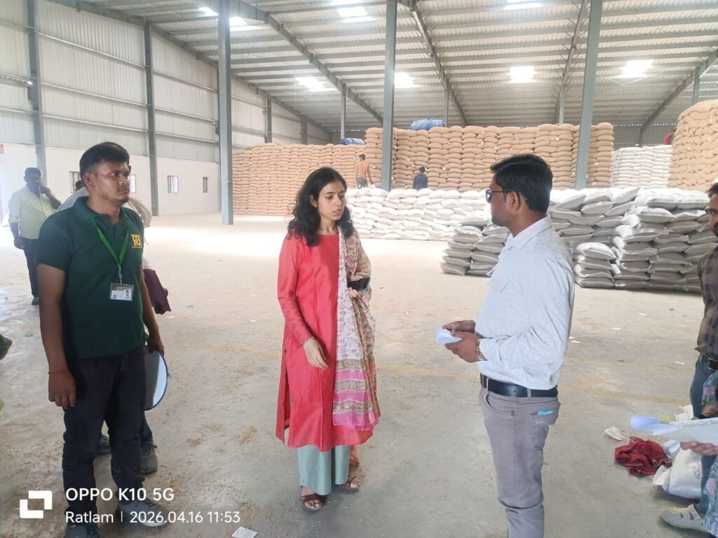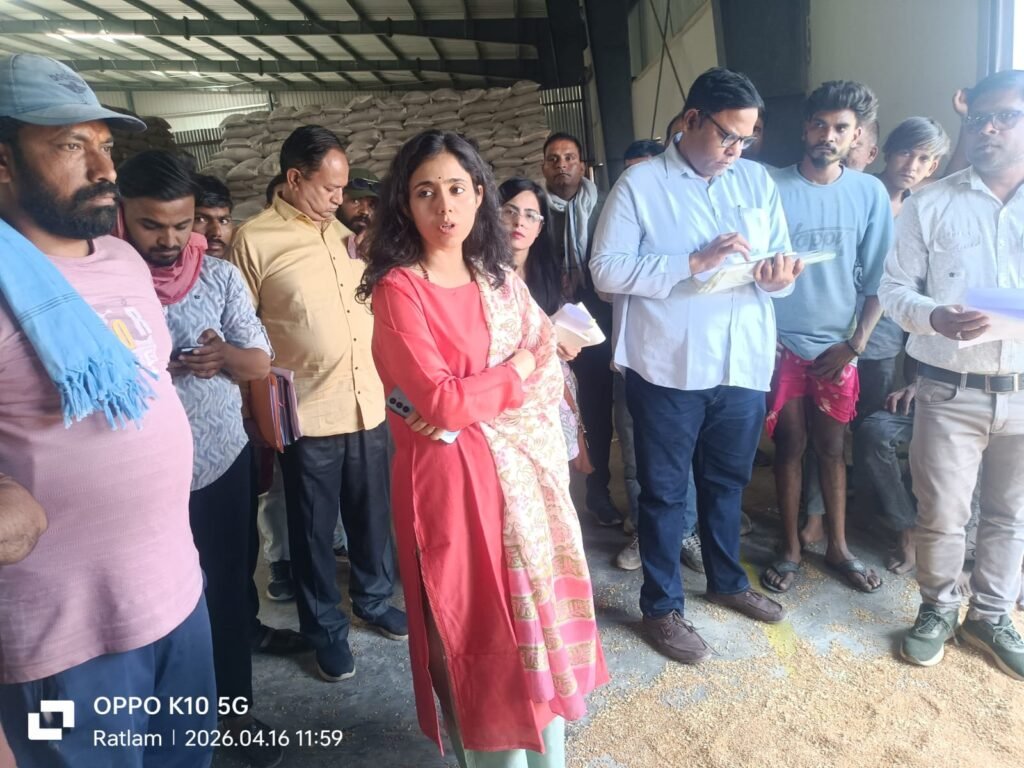 रतलाम । रबी विपणन वर्ष 2026-27 के अंतर्गत शासन के निर्देशानुसार जिले में उपार्जन केन्द्रो पर समर्थन मूल्य पर गेहूं उपार्जन किया जा रहा है ।उपार्जन कार्य का कलेक्टर श्रीमती मिशा सिंह ने आकस्मिक निरीक्षण किया।कलेक्टर ने मां उमिया वेयरहाउस एवं हाकिमी वेयरहाउस बान्गरोद पहुंचकर व्यवस्थाओं का जायजा लिया।