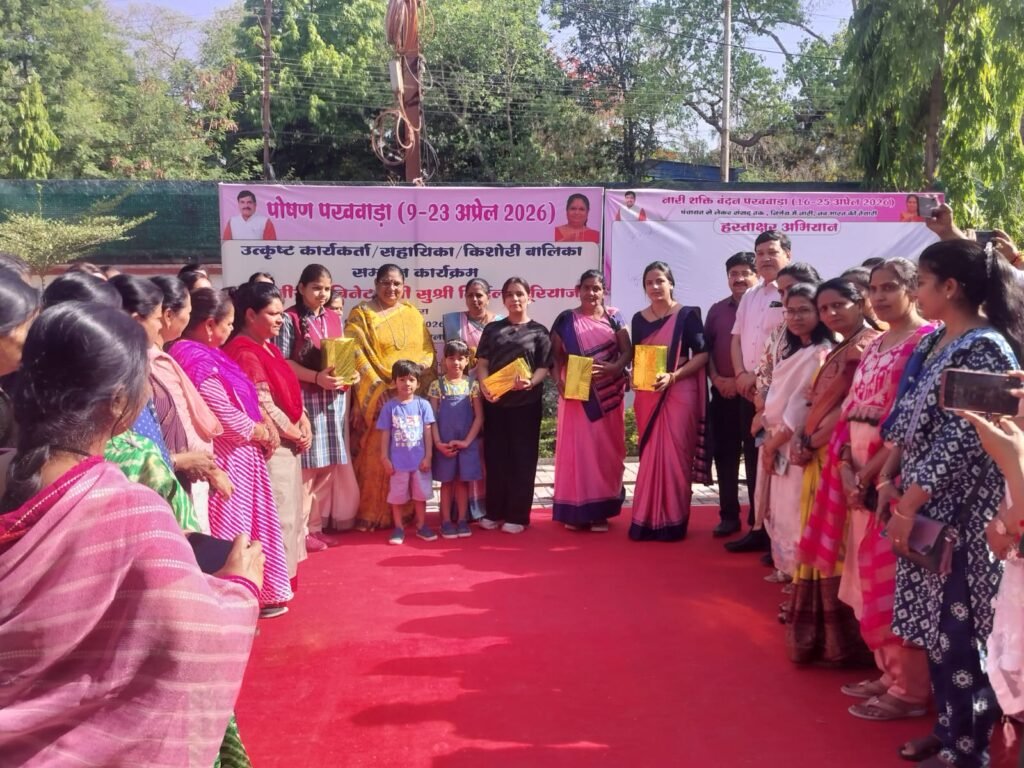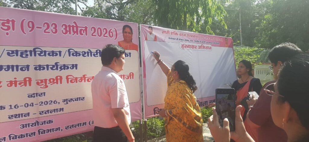 रतलाम । शासन द्वारा 10 अप्रैल से 25 अप्रैल तक नारी शक्ति वंदन पखवाड़ा मनाया जा रहा है। नारी शक्ति वंदन पखवाड़ा अंतर्गत नारी शक्ति वंदन के हस्ताक्षर अभियान का शुभारंभ रतलाम जिले में महिला एवं बाल विकास मंत्री एवं कैबिनेट मंत्री मध्य प्रदेश शासन सुश्री निर्मला भूरिया द्वारा किया गया। इस अवसर पर उन्होंने कक्षा 10 वी की मेरिट सूची में स्थान प्राप्त करने वाली बालिका एवं 12वी की मेरिट सूची में स्थान प्राप्त करने वाली बालिका और 8 वे राष्ट्रीय पोषण पखवाड़ा में उत्कृष्ट कार्य कर रही आंगनबाड़ी कार्यकर्ता श्रीमती भाग्यवती सेन (परि. रतलाम ग्रामीण-02), श्रीमती पिंकी परमार (परि. रतलाम ग्रामीण-01) और आंगनवाड़ी सहायिका लीला पाण्डे (परि. रतलाम शहर-02) को सुश्री भूरिया ने सम्मानित किया। कार्यक्रम मे संयुक्त संचालक और ओएसडी डॉ. विशाल नाडकर्णी, जिला कार्यक्रम अधिकारी श्री रामनिवास बुधौलिया, परियोजना अधिकारी श्रीमती चेतना गेहलोद, श्रीमती अर्चना माहौर, प्रभारी परियोजना अधिकारी श्रीमती प्रिंयका बैरागी, पर्यवेक्षक फिरदौस खान एवं आंगनवाडी कार्यकर्ता उपस्थित थी।