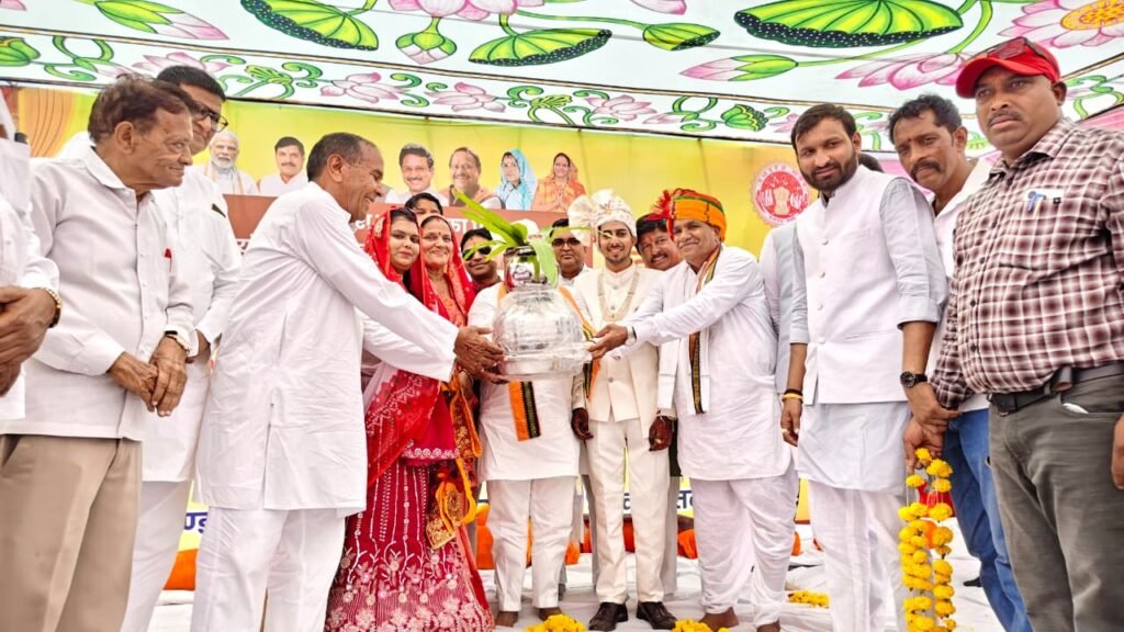 विधायक मथुरलाल डामर ने वर वधुओं को विशेष उपहार में पौधा किया भेंट