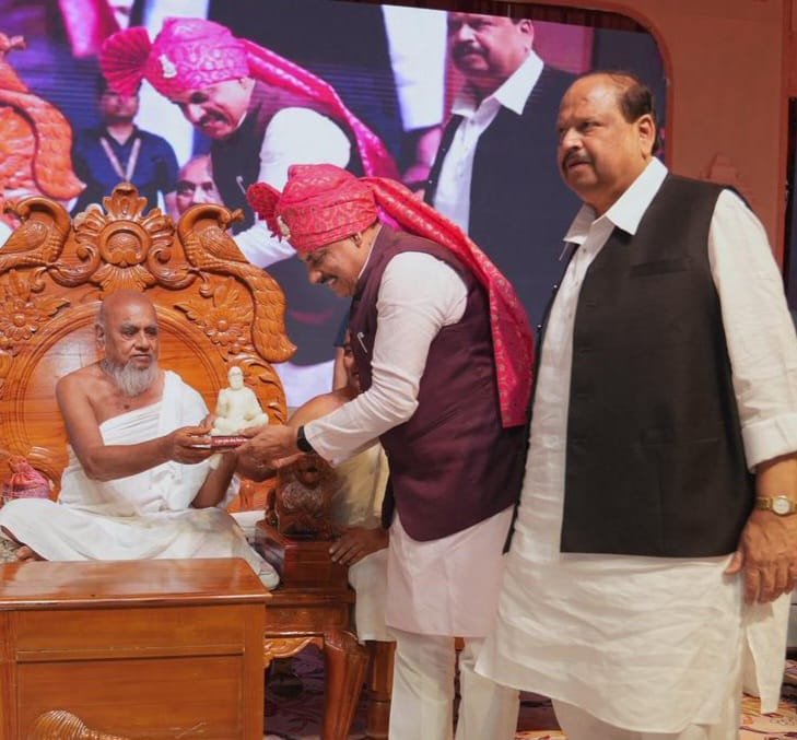 रतलाम 19 अप्रेल । मोहन खेड़ा तीर्थ में रविवार को पुण्य सम्राट श्रीमद् विजय जयंत सेन सूरीश्वर जी मसा के पट्टधर आचार्य देवेश श्रीमद विजय नित्य सेन सूरीश्वर जी की निश्रा में भव्य पारणा महोत्सव मे मुख्यमंत्री डॉ. मोहन यादव शामिल हुए। आचार्य देवेश श्रीमद विजय नित्य सेन सूरीश्वर जी ने मुख्यमंत्री डॉ. यादव को पुण्य सम्राट की प्रतिमा भेंट कर आशीर्वाद प्रदान किया। इस दौरान केबिनेट मंत्री चेतन्य काश्यप भी उपस्थित रहे।