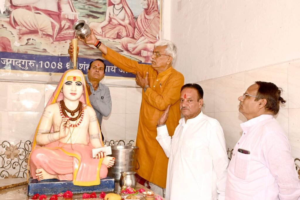 आदि गुरु शंकराचार्य जी की जन्म जयंती पर सर्व ब्राह्मण समाज की और से यजमान मुकेश जोशी दंपति के द्वारा सम्पन्न अभिषेक श्री पंडित श्री परसाई जी ने कराया।