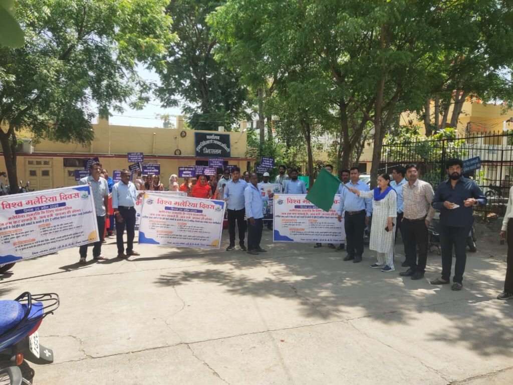 रतलाम 25 अप्रैल। विश्व मलेरिया दिवस के अवसर पर मलेरिया विभाग द्वारा मुख्य चिकित्सा एवं स्वास्थ्य अधिकारी कार्यालय परिसर रतलाम में मलेरिया 2026 की थीम “ड्रिवन टू एंड मलेरिया: नाउ वी कैन, नाउ वी मस्ट”पर जनजागरूकता एवं मलेरिया से बचाव हेतु संवाद का आयोजन किया गया । इस संवाद और रैली को मुख्य चिकित्सा एवं स्वास्थ्य अधिकारी डाॅ. संध्या बेलसरे, और जिला मलेरिया अधिकारी डाॅ. देवेन्द्र कुमार मोर्य, द्वारा हरी झण्डी दिखाकर रवाना किया गया। संवाद कार्यक्रम एवं जागरूकता रैली में स्वास्थ्य कार्यकर्ता, आशा कार्यकर्ताओं, मलेरिया विभाग के अधिकारी/कर्मचारी द्वारा मलेरिया से जागरूकता एवं बचाव संबंधी सन्देश प्रसारित किया गया।