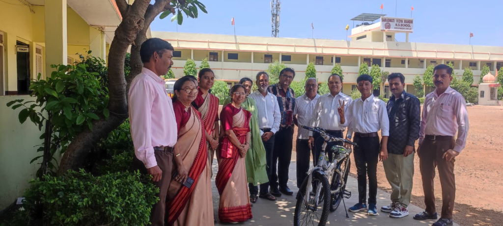 रतलाम। सरस्वती विद्या मंदिर काटजू नगर रतलाम में माध्यमिक शिक्षा मंडल के द्वारा आयोजित परीक्षा में कक्षा दसवीं के भैया ओजस्व पाठक के 95.4 अंक प्राप्त करने पर सरस्वती शिशु शिक्षा समिति के सह सचिव श्री विनोद मूणत परिवार के द्वारा साइकिल भेंट की गई। इस अवसर पर सरस्वती शिशु शिक्षा समिति के अध्यक्ष श्री वीरेंद्र सखलेचा , सचिव श्री शैलेंद्र सुरेका, उपाध्यक्ष श्री जवाहर चौधरी, प्राचार्या श्रीमती वत्सला रूनवाल व आचार्य/ दीदी उपस्थित थे।